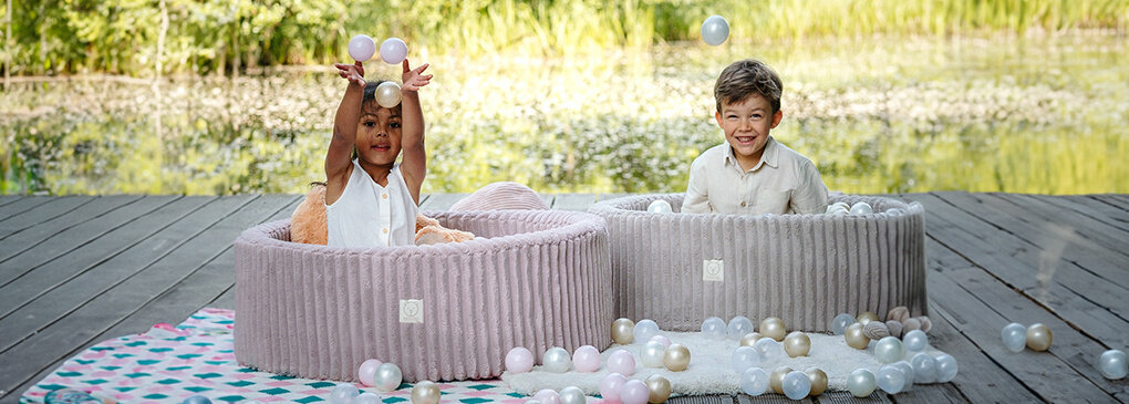 Ballenbak Rond 90x30 | Light Grey Corduroy incl. 200 ballen (Pearl/Silver/Light Blue)
